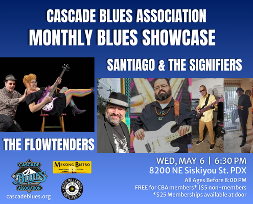 The Cascade Blues Association’s Monthly Showcase takes place on the first Wednesday of each month at Mekong Bistro, bringing the community together to celebrate live blues in all its forms. These evenings highlight exceptional regional and visiting talent, offering a chance to connect with the music and the musicians – all while supporting the artists who keep our blues community thriving.
