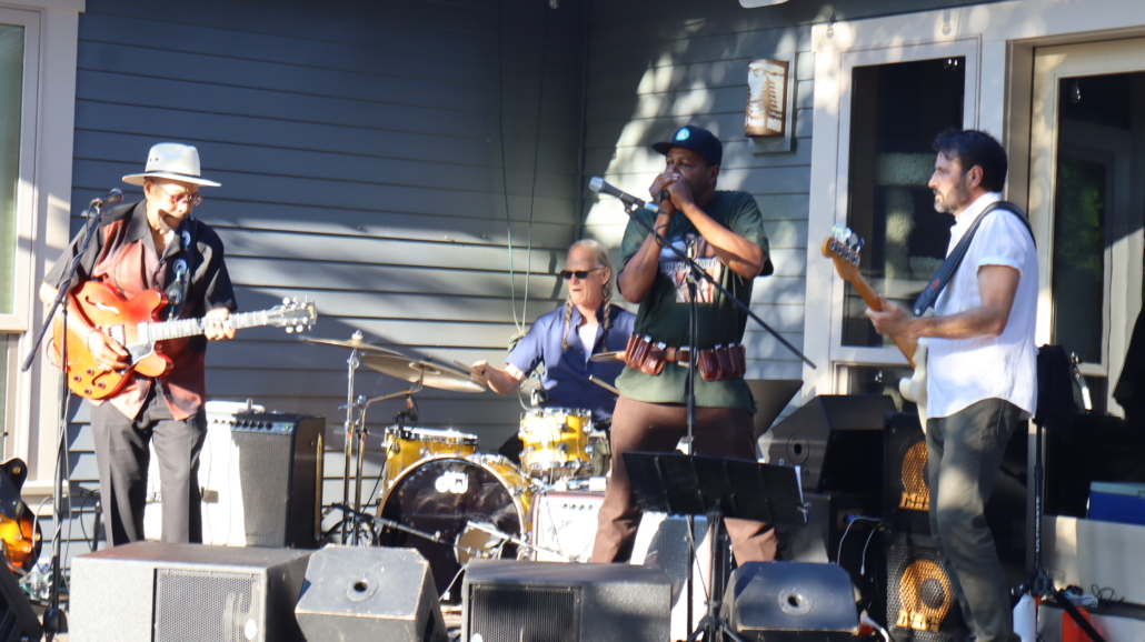 It was a laid-back, bring-a-dish, BYOB, kick-off-your-shoes kind of event — personal and full of that bluesy atmosphere, running from late afternoon into the evening. The deck was the spotlight—with a garden of flowers on the opposite side and trees swaying gently in the breeze. When the music starts, the chatter fades, and the crowd settles in, just feet away from the performers. Every note, every lyric draws a few listeners toward the deck, where they begin to move, almost instinctively, with the rhythm.